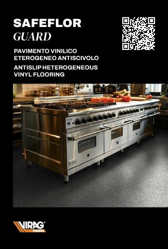 Safeflor Guard è un pavimento stratificato costituito da uno strato di usura, uno in fibra di vetro stabilizzante e uno strato di supporto con mescola omogenea morbida di cloruro di vinile, plastificanti, stabilizzanti, additivi inorganici, pigmenti colorati e cariche minerali inerti a bassa granulometria